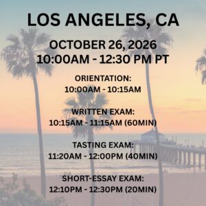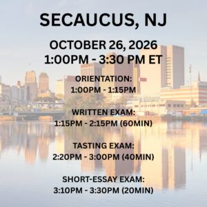 This will be an intensive ONLINE course. We will focus on the most important information covered by the textbook, exam, and tasting. This is a condensed course different from our previous JSA courses. We will spend most of the time covering test-taking strategies, difficult-to-understand concepts covered by the textbook, and what to expect on the exam.